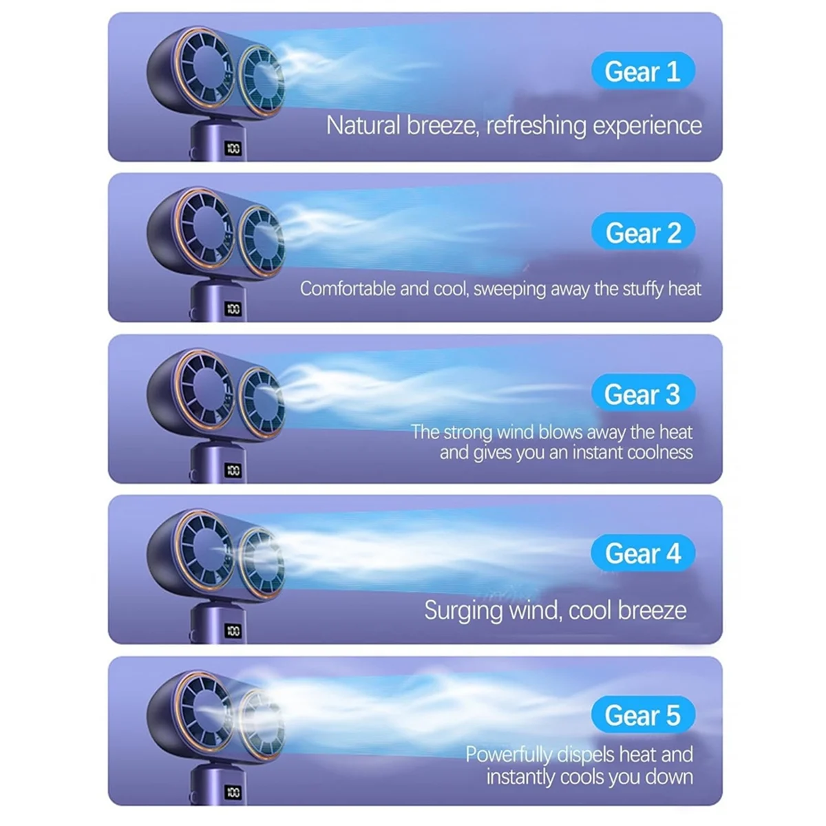 Portable USB Neck Fan – Foldable, Rechargeable, 5-Speed with Display